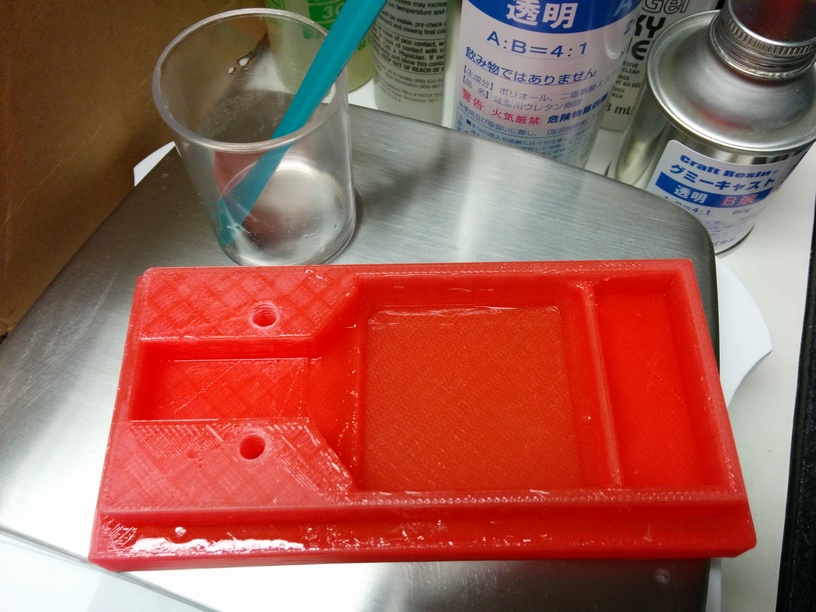 In order to make the surface smooth, we coated the surface with Gummy Cast and waited it cured. Finally the surface became smooth.